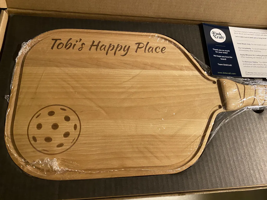 What a wonderful and beautiful board! I love that is is not only beautiful but also that it is pickleball related. I received it as a gift and I can't tell you what a smile it brought to both my husband's and my face. It is a perfect gift for any pickleball player, great gift!